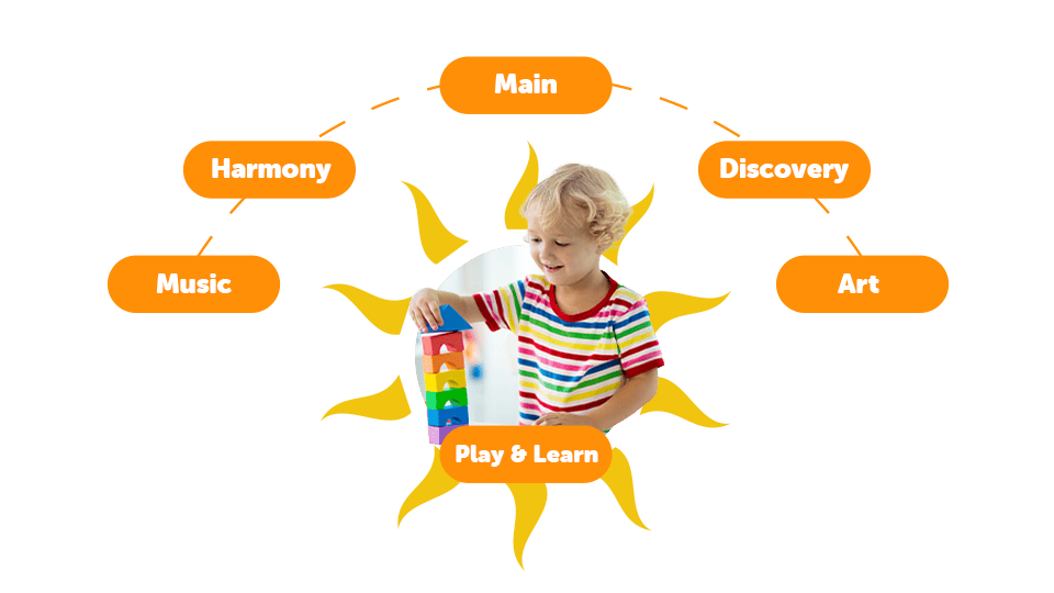 On the other hand, music is at the core of mathematics. Rhythm and beats in music contribute to the development of children's mathematical intelligence. For this reason, Gymboree's program, which includes 18 different world music genres, is implemented in all our preschool classes. Our program is built on fundamental areas such as science, art, music, and sports.