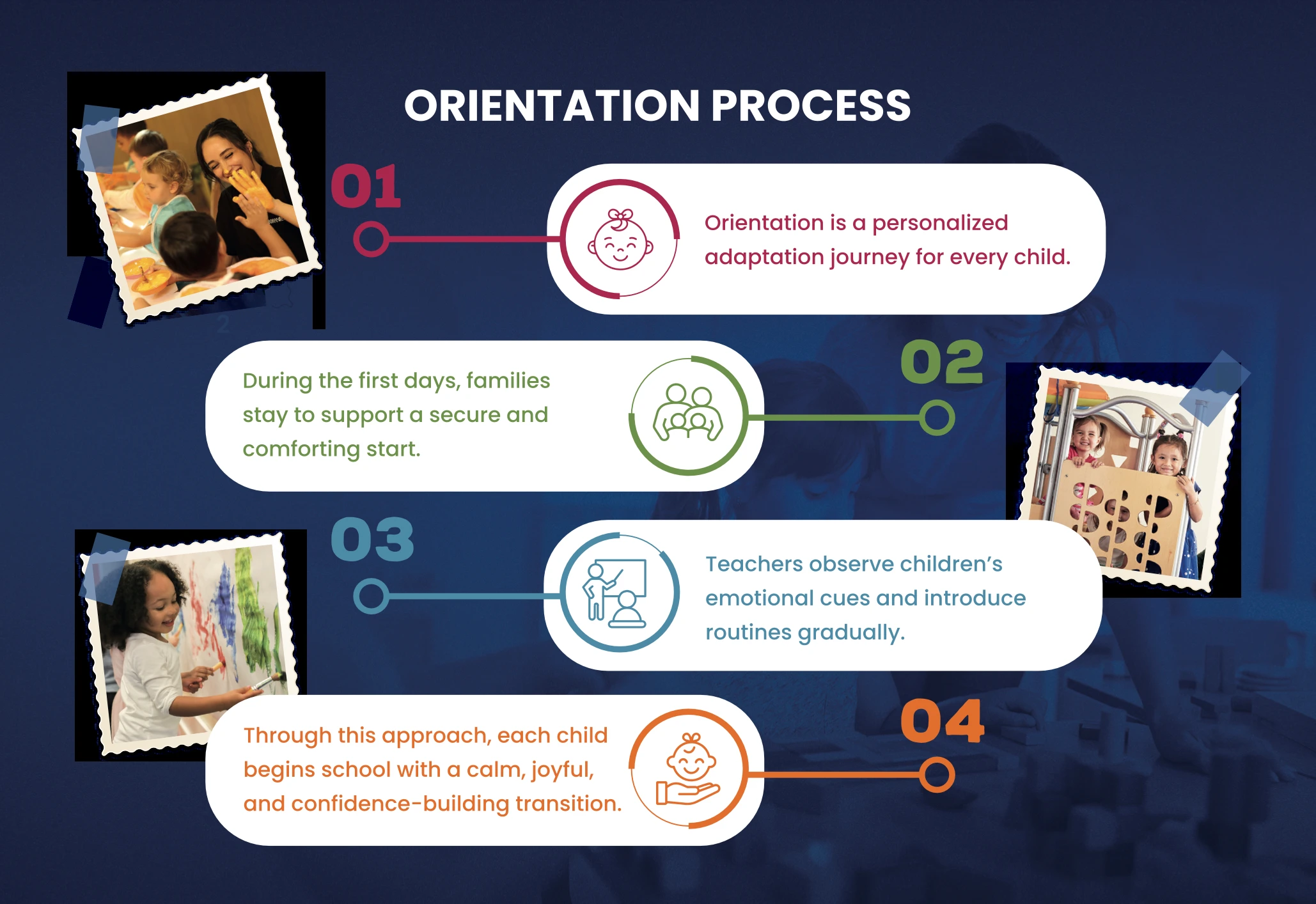 Our daily programs balance structured exploration with open-ended play, music, outdoor experiences, and creative work. This rhythm supports academic, emotional, physical, and social development equally. Teachers plan intentionally, observe progress, and document milestones — ensuring that every experience supports both confidence and competence.